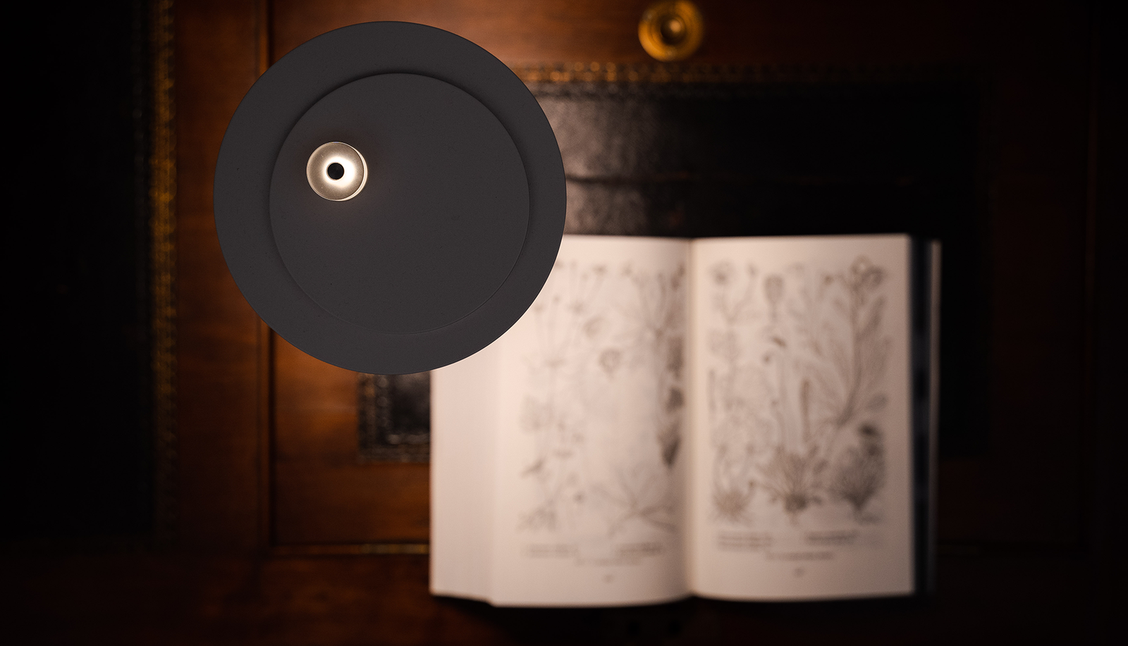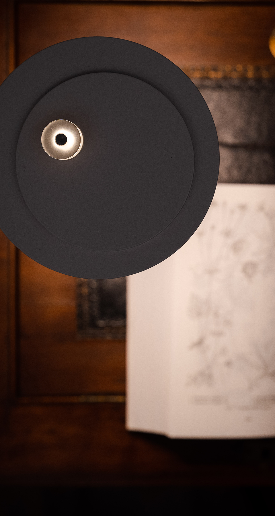 Portable, rechargeable lamp diffusing warm, soft light.
